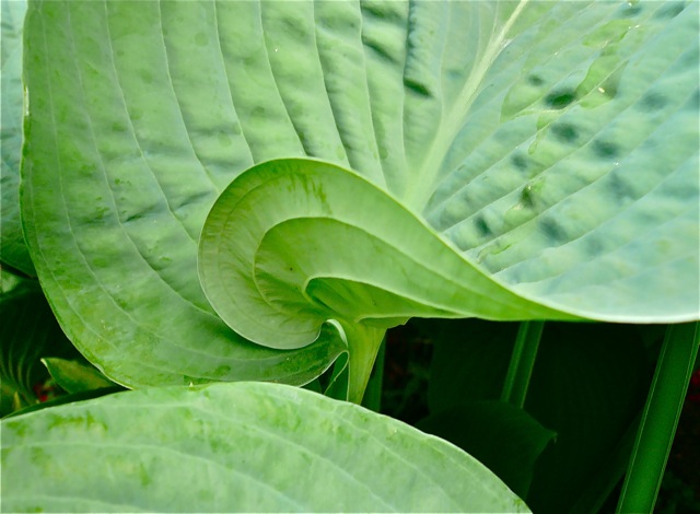 Your photos are lovely, particulrly the one of the curling leaf – the hosta. I never would have identified that. Perhaps they like a cooler climate. I sent your pic of the mysterious green ball to a couple of gardening friends. They can’t ID it either, but are curious. If they get really curious and figure it out, I’ll let you know.