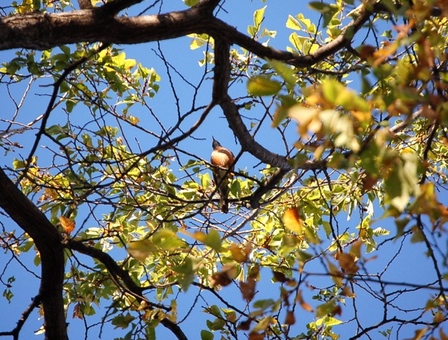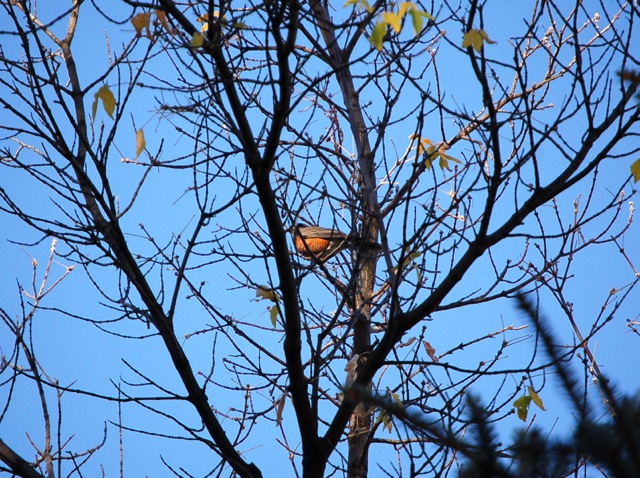 The sparrows on the roof enjoy the cloudless blue too: