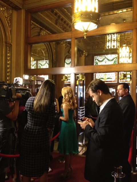 After over an hour waiting inline outside, we were ushered into the historic building (100th anniversary this year) that housed the beautiful Elgin and the Winter Garden Theatres. And lo and behold, I saw Jessica Chastain standing right there in a press line answering questions. Who can take a focused shot with steady hands while being herded like sheep quickly passing by Jessica Chastain?
