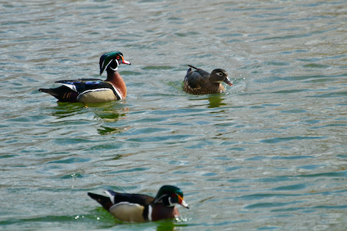 At the bird sanctuary, the wood ducks are back, brightening up a cold morning: