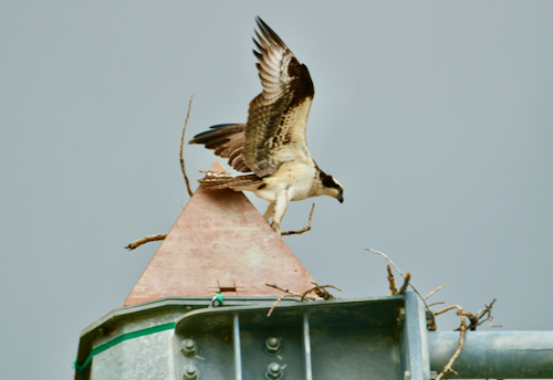 Spring is home construction season. The Ospreys are back and busy building their perennial home.