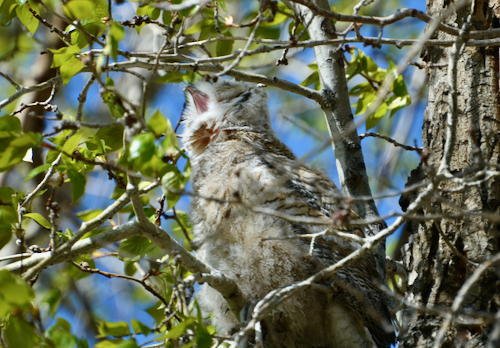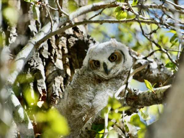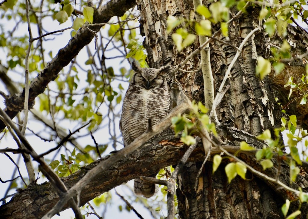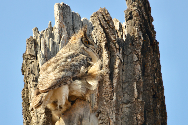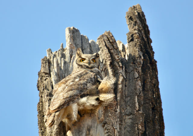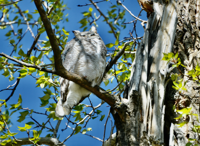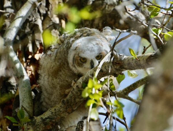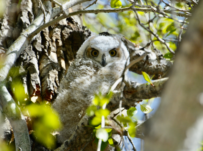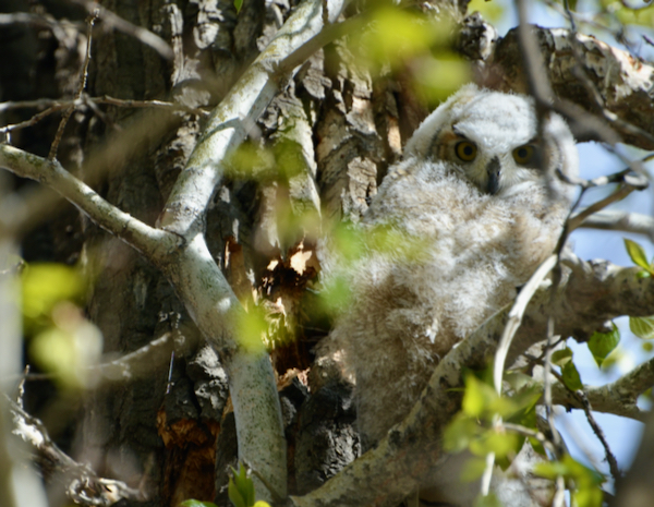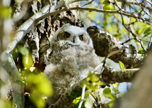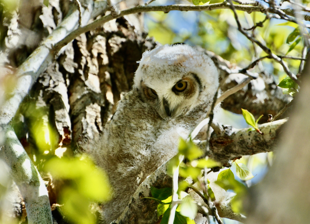 This single Great Horned Owlet makes it all worth the wait. Other birders told me that there were two babies this year, but one fell off a tree and was taken away by wildlife staff, hopefully to mend injury and recuperate. So, leaving this one all the more precious. Can you find baby here?
