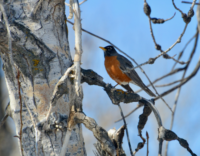 But the Pond is teeming with life, a cacophony of bird calls from everywhere. Here’s our first robin coming back from afar, the sure sign of spring: