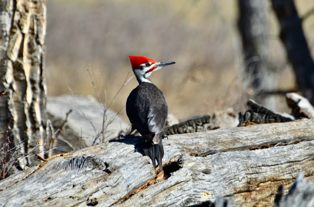 Soon I found that it wasn’t just a black bird. The red crown gave it away. A pileated woodpecker, my long lost friend! I’ve seen many woodpeckers in my neck of the woods, downy, hairy, northern flicker… but I haven’t seen, let alone photographed, a pileated woodpecker for many years.