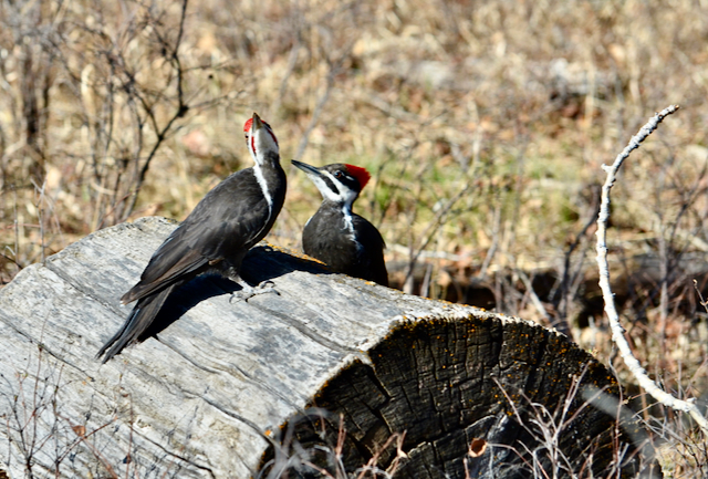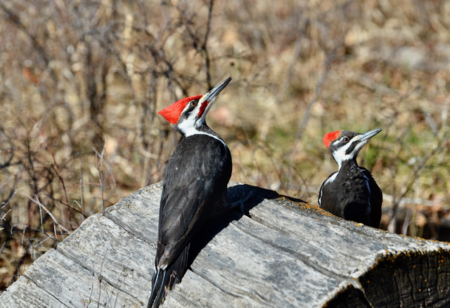 Just as I was congratulating myself for the good fortune in my first spring outing of the year, I saw two. How rare it is to see two pileated woodpeckers together, for me anyway. This pair wasn’t afraid of nature paparazzi like myself, for I’m sure they must have known I was around. I was able to get a good pose, but still natural in situ.