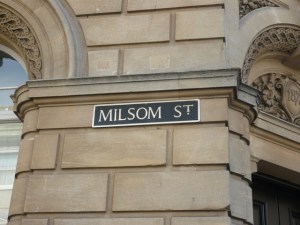Further up the town, there’s Milsom Street, a vibrant commercial area of shops and businesses. The first time Anne saw Captain Wentworth again in Bath was on Milsom Street. Here’s a present day view of the same site:
