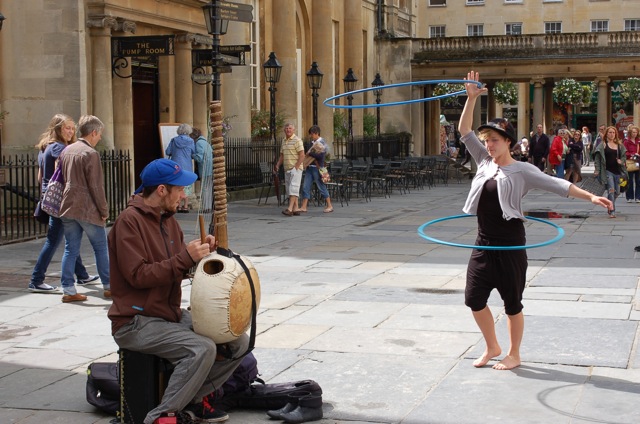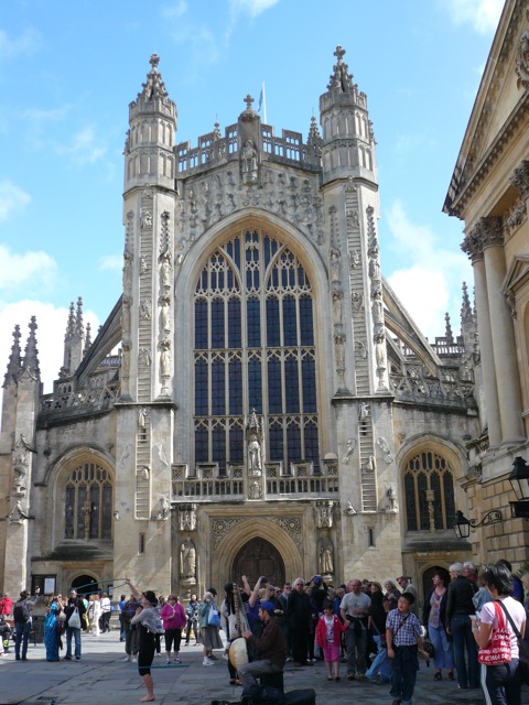 Today, the open area outside the Pump Room by the Roman Baths is perhaps the most popular tourist gathering place. Tour buses stop at the Bath Abbey for pick up and drop off, buskers perform in the open space outside the Roman Baths and Pump Room: